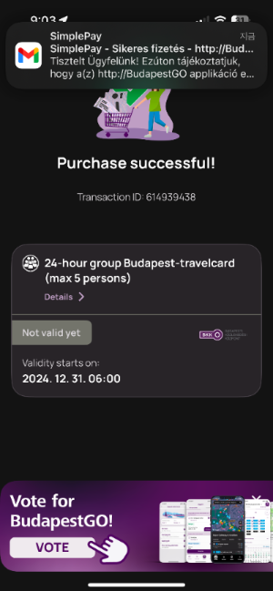 그리고 결제를 완료하면 저렇게 24시간권 모바일 티켓을 확인할 수 있고, 아래에서는 아직 Not valid yet이라고 활성화되지 않은 것을 볼 수 있습니다. 시작 시작이 되면 valid 상태로 바뀌고 아래 Scan 버튼이 보이게 됩니다. 나중에 대중교통 탑승 시 Scan 버튼을 사용하게 되니 꼭 기억하세요.